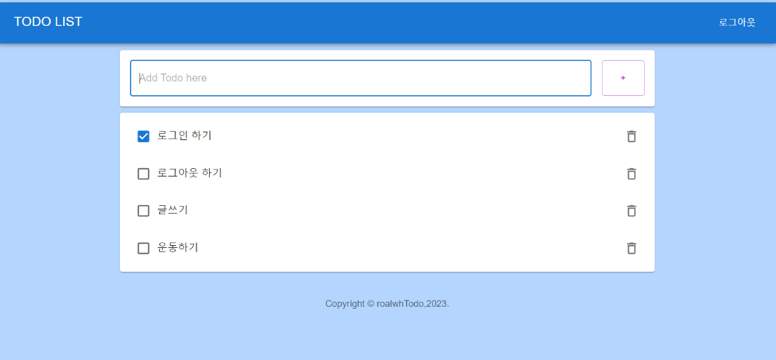 - 상단의 입력칸에서 Todo 값을 입력 하면 등록되면서 아래의 리스트에 추가된다.